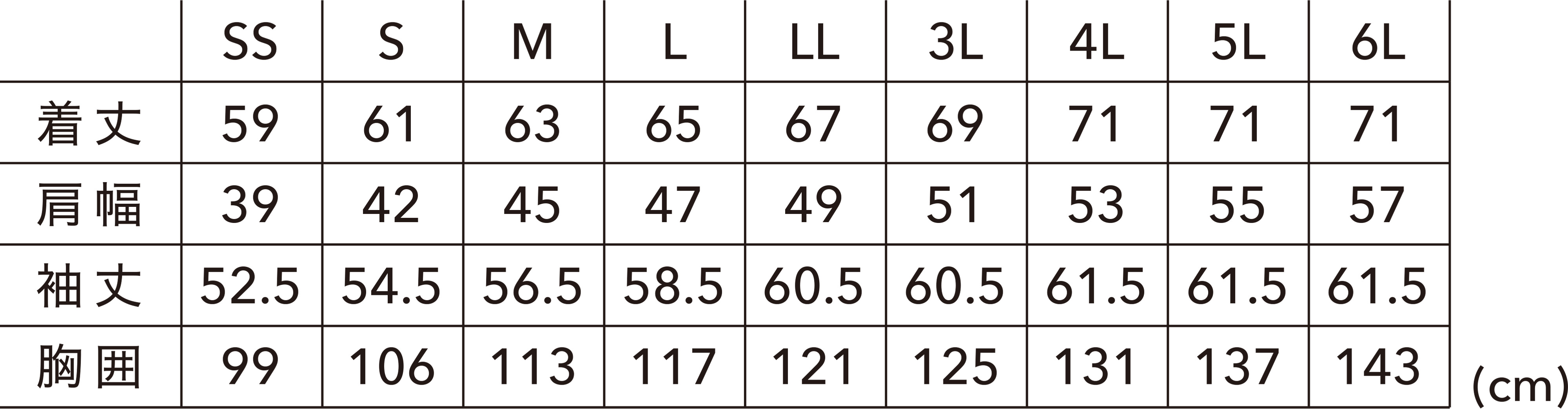 ジャケットのサイズはこんな感じです。