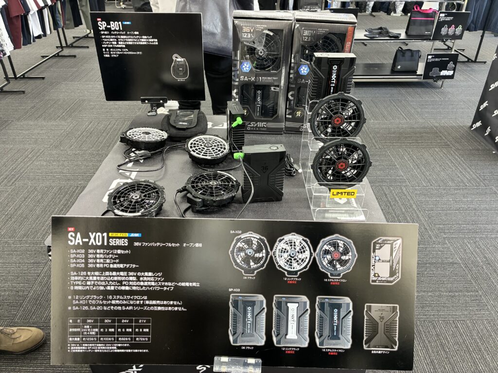作業服メーカー夏もの展示会いってきた!空調服は36Vのタイプが!